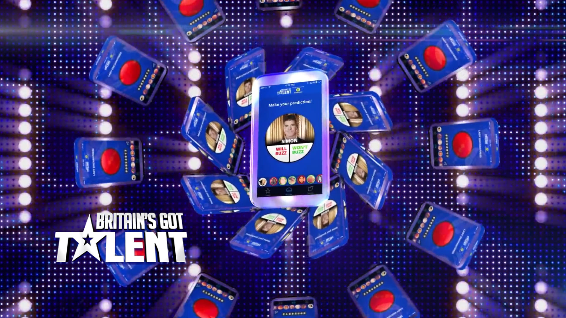 For the latest series of BGT we wanted a stripped back, flatter design that focused on interaction with the show. The app features a playalong element which allows the user to 'BUZZ' acts they want off, guess if the judge will 'BUZZ', trivia games and polls all with real-time feedback. Other sections on the app inculde a twitter feed, customized buzzer area and a news stream comprising of videos, photos and articles.
