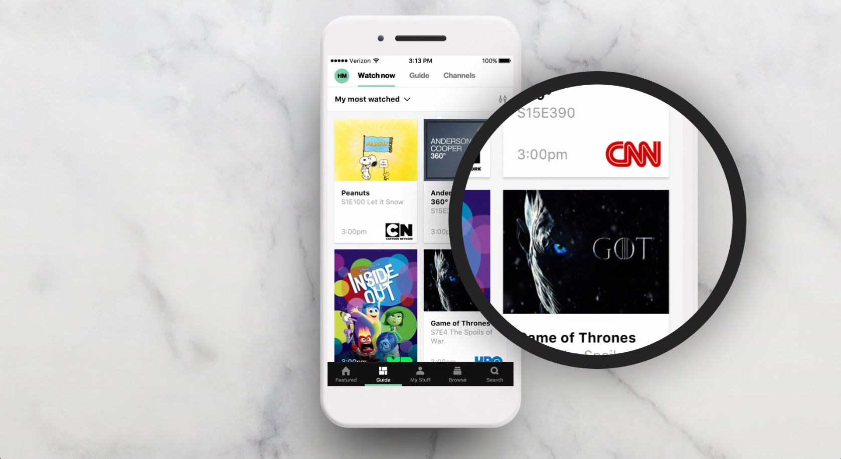 Verizon is the USA’s largest telecommunications company, offering a range of services, from fibre-optic internet to home and mobile phone products. W12 Studios were tasked to redesign the mobile apps arm of their TV offering, Fios, to provide a more efficient and contemporary experience better aligned with Verizon’s bold brand.